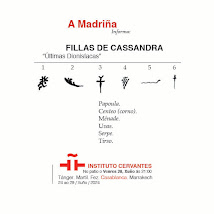Chejou o día e chejou a romería !!! Fillas de Cassandra hoxe en Casablanca (a outra). Desde a nosa Galicia e con ganas de dalo todo, hoxe veneres 28 de xuño e ás 21:00 no Instituto Cervantes de Casablanca, Maroc, María e Sara e viceversa. "Créetelo" !